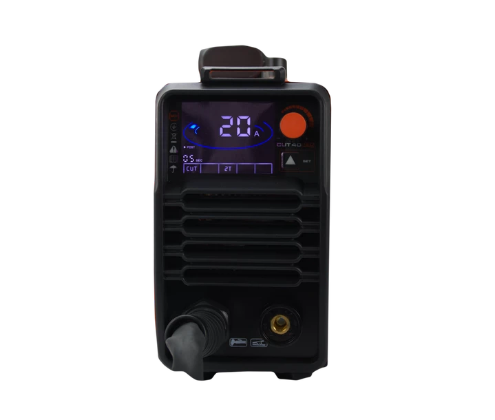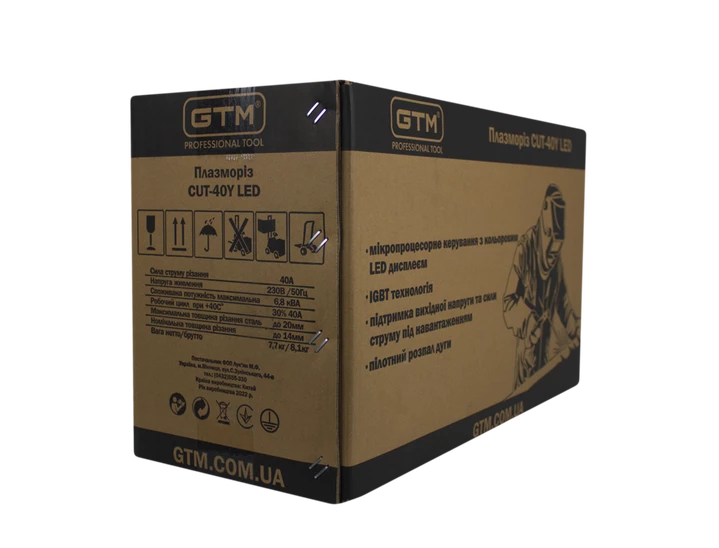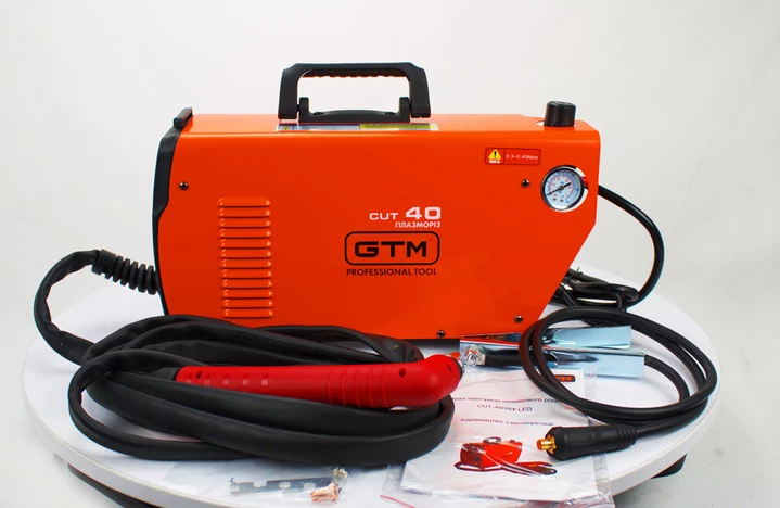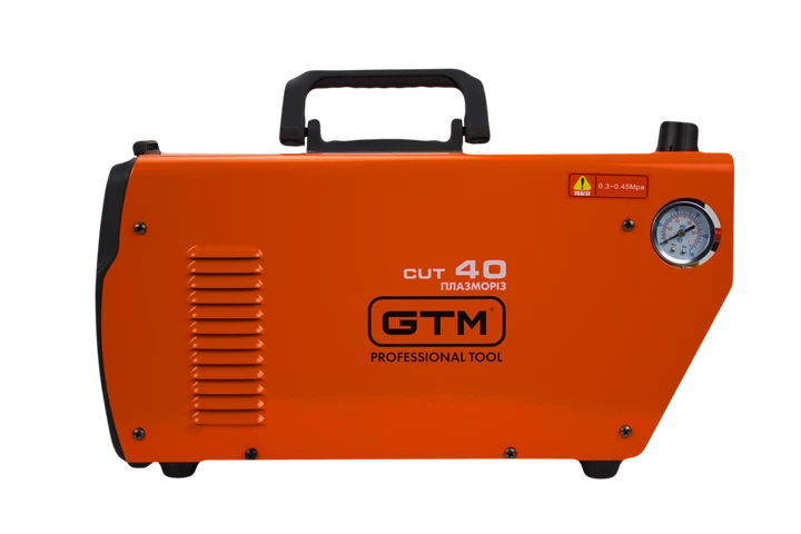 GTM CUT-40Y LED - інверторна установка для повітряно-плазмового різання різних конструкційних матеріалів: сталь, мідь, алюміній, чавун і т.д. Апарат для плазмового різання CUT-40Y LED генерує плазму за допомогою повітря, що проходить через спеціальний блок підготовки. Температура в місці різу досягає 15000 С, що дозволяє з легкістю різати найтвердіші метали.