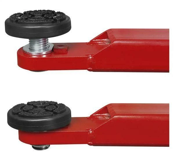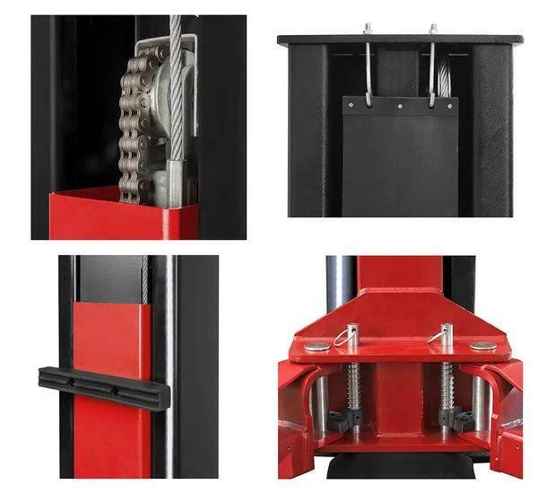 Підйомник має нижню синхронізацію і оснащений трифазним двигуном потужністю 2,2 кВт, який забезпечує швидкість підйому близько 55 с. Асиметричні телескопічні лапи (розмах передніх - 620-880 мм, задніх - 820-1260 мм) дозволяють працювати з авто з різною колісною базою, а мінімальна висота лап 90 мм підходить для низьких автомобілів. Завдяки автоматичному розблокуванню запобіжних замків, цей автомобільний підйомник з розеткою економить час і зусилля оператора, а ряд систем безпеки робить його надійним і довговічним.