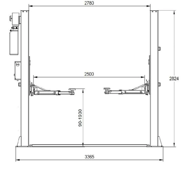 Підйом займає усього 55 с, опускання - 25 с. Електродвигун потужністю 2,2 кВт і проста панель керування (підйом, опускання, опускання в нижнє положення) роблять цей автопідйомник для СТО надзвичайно зручним і легким у використанні.