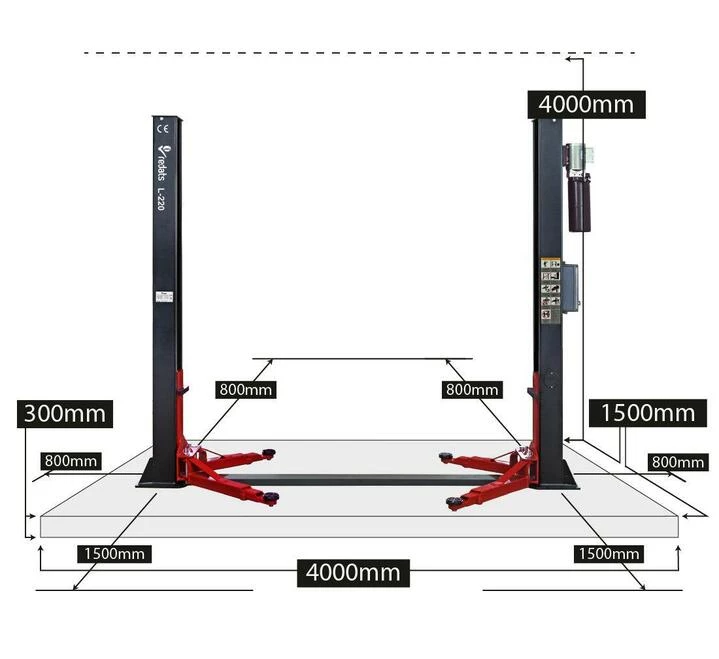 Автоматичний двостійковий підйомник REDATS L-220 з вантажопідйомністю 4 тонни, міцною, надійною конструкцією та швидким підйомом і опусканням буде відмінним вибором для автосервісів з великим потоком автомобілів. Підходить для обслуговування не лише легкових автомобілів, а й мікроавтобусів та легкої комерційної техніки. Нижня балка висотою 9 см дозволяє зручно працювати з низькими авто. Максимальна висота підйому становить 193 см. Максимальна ширина автомобіля - 2500 мм. Складані стрічки підйомника дають змогу ефективно обслуговувати довгі авто.
