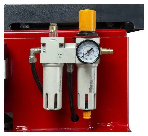 Рух монтажної колони здійснюється за допомогою пневматичних циліндрів і керується ножною педаллю. Можливість фіксації монтажної лапи у попередньо встановленому положенні дозволяє швидко замінити весь комплект коліс без потреби додаткового регулювання. Двошвидкісний двигун з педальним перемикачем і зусилля лопатки для розбивання борту 2500 кг забезпечують ефективну роботу з колесами різної складності. Живлення від напруги 230 В дає змогу ефективно використовувати цей автоматичний шиномонтажний верстат без необхідності трифазної мережі.