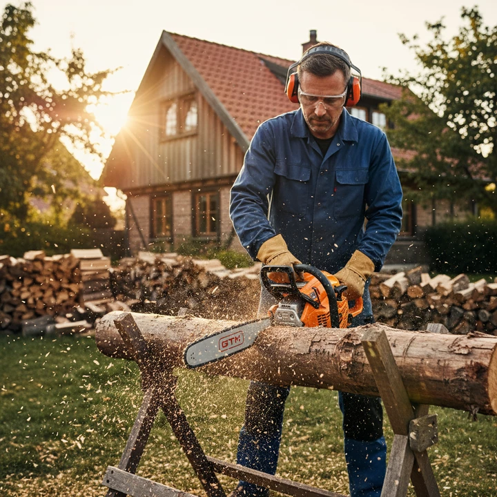 GTM CN45D-CH — потужна та надійна бензопила напівпрофксійного класу, розроблена для виконання різноманітних завдань середньої складності: обрізання дерев у саду, заготівлі дров, а також столярних і теслярських робіт у домашніх умовах. Оснащена 2-тактним бензиновим двигуном потужністю 1,9 кВт (2,6 к.с.), який забезпечує високий крутний момент, стабільну роботу під навантаженням та збільшений моторесурс. Пила працює на паливній суміші бензину з моторним маслом у співвідношенні 40:1 (25 мл мастила на 1 літр бензину), що гарантує ефективне змащення й надійну роботу двигуна. Ергономічний корпус та антивібраційна система забезпечують комфорт під час тривалої експлуатації.