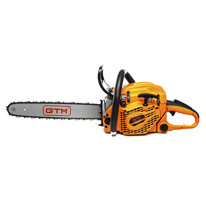 GTM CN58D-CH — потужна та надійна бензопила професійного класу, розроблена для виконання різноманітних завдань середньої та високої складності: спилювання та обрізання дерев у саду, заготівлі дров, а також столярних і теслярських робіт у домашніх умовах. Оснащена 2-тактним бензиновим двигуном потужністю 2,4 кВт (3,3 к.с.), який забезпечує високий крутний момент, стабільну роботу під навантаженням та збільшений моторесурс. Пила працює на паливній суміші бензину з моторним маслом у співвідношенні 40:1 (25 мл мастила на 1 літр бензину), що гарантує ефективне змащення й надійну роботу двигуна. Ергономічний корпус та антивібраційна система забезпечують комфорт під час тривалої експлуатації.