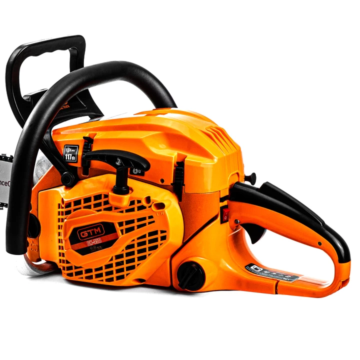 GTM CN65D - високопродуктивна бензопила професійного класу, призначена для середніх та великих навантажень під час спилювання дерев, обрізання саду, заготівлі дров. Інструмент обладнаний 2-тактним бензиновим двигуном з потужністю 2,9 кВт (4 к.с.) з підвищеним крутним моментом і збільшеним ресурсом роботи. Як паливо використовується суміш бензину з моторним мастилом у пропорції 40:1 (на 1 л бензину 25 мл мастила).