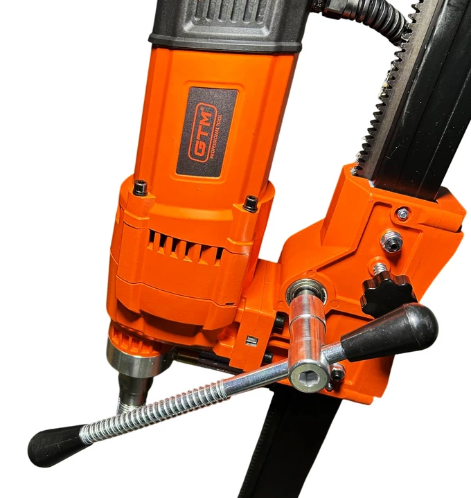 Бурильна установка GTM BMK-260AC/45 - електрообладнання для мокрого буріння отворів в бетонних, кам'яних, цегляних і гранітних поверхнях за допомогою алмазних коронок. Представлена модель фіксується на спеціальній стійці (станині), яка входить в стандартну комплектацію. Підключається до системи водяного охолодження і дозволяє проробляти отвори діаметром до 260 мм. Алмазна коронка кріпиться безпосередньо до шпинделя без використання патрона.