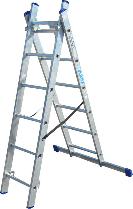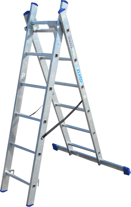 Драбина Elkop VHR Hobby 2x6 - двосекційна універсальна алюмінієва драбина, яка добре підходить як для побутового, так і для професійного використання. Представлена модель може використовуватися як в ролі приставної драбини, так і в якості стремянки. Запобіжні стропи гарантують безпечне використання і запобігають випадковому розкриттю в процесі експлуатації.