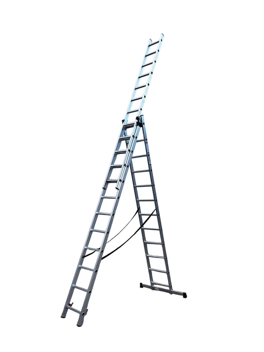 Універсальні 3-секційні драбини GTM - це надійні та універсальні драбини, які можна використовувати як приставні чи висувні драбини, так і як стремянки. Посилений профіль, сходинки з антиковзким профілем, додатковий стабілізатор та надійні металеві фіксуючі замки гарантують безпеку використання драбин GTM.