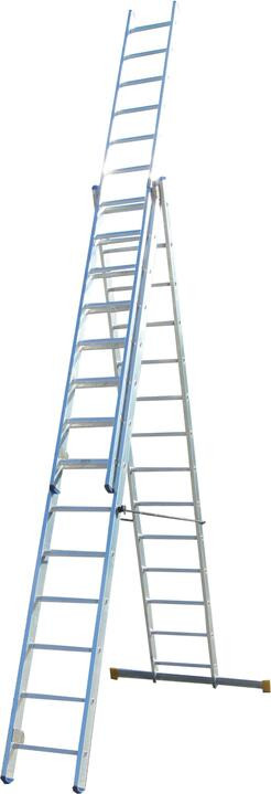 Драбина Elkop VHR Profi 3x14 - трисекційна універсальна алюмінієва драбина, яка добре підходить як для побутового, так і для професійного використання. Представлена модель може виконувати функції трьох типів драбин:приставних, висувних і стремянок. Запобіжні сталеві стропи забезпечують безпечне використання і запобігають випадковому розкриттю в процесі експлуатації.