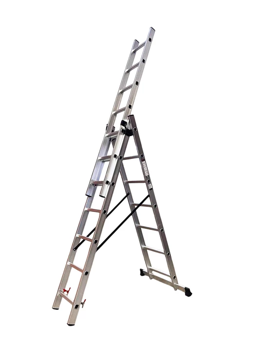 Універсальні 3-секційні драбини GTM - це надійні та універсальні драбини, які можна використовувати як приставні чи висувні драбини, так і як стремянки. Посилений профіль, сходинки з антиковзким профілем, додатковий стабілізатор та надійні металеві фіксуючі замки гарантують безпеку використання драбин GTM.