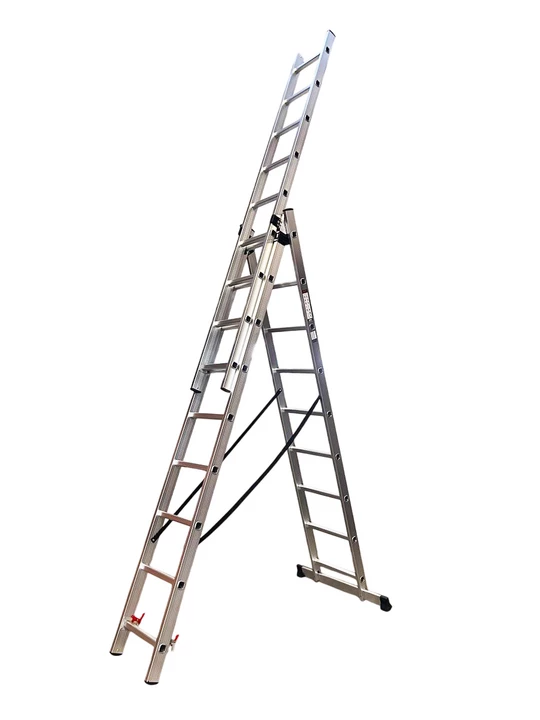Універсальні 3-секційні драбини GTM - це надійні та універсальні драбини, які можна використовувати як приставні чи висувні драбини, так і як стремянки. Посилений профіль, сходинки з антиковзким профілем, додатковий стабілізатор та надійні металеві фіксуючі замки гарантують безпеку використання драбин GTM.