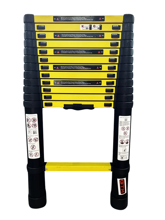 Драбина GTM KME1038Y/881038 - приставна телескопічна алюмінієва драбина на 13 сходинок для побутового та професійного використання. Ця модель не має будь-яких додаткових опор, тому притуляється до стіни або іншої вертикальної поверхні під кутом 65-75 град. відносно підлоги.