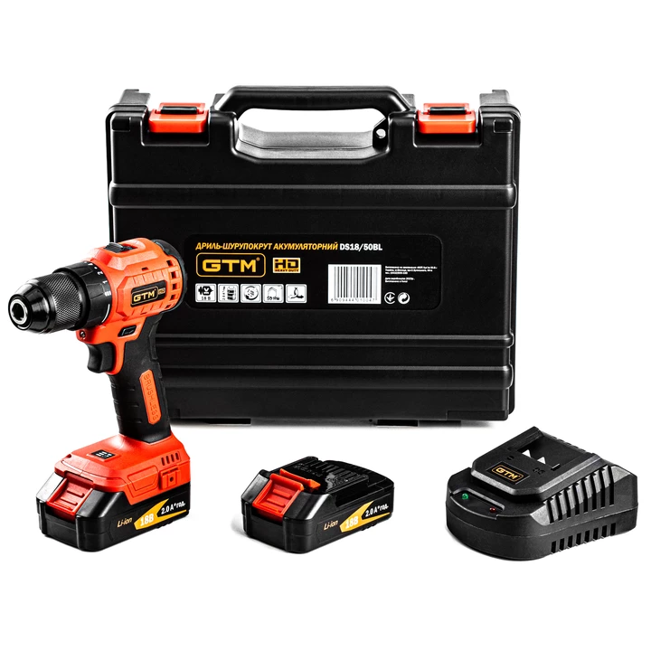 GTM DS18/50BL - професійний акумуляторний дриль-шурупокрут з безщітковим двигуном, розроблений для інтенсивної щоденної роботи. Підходить для монтажників, будівельників і домашніх майстрів, які цінують витривалість, автономність і точність. Завдяки безщітковому мотору інструмент має вдвічі більший ресурс, ніж стандартні аналоги. Акумулятори 18 В з елементами Samsung та Sanyo забезпечують довгу роботу без підзарядки та стабільну потужність навіть під навантаженням.