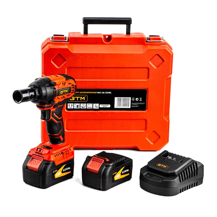 GTM IWC18/320BL — це професійний безщітковий ударний гайкокрут, який живиться від 18-вольтових Li-Ion акумуляторів та створений для інтенсивної роботи в сервісних центрах, на будівельних майданчиках та в автомайстернях.