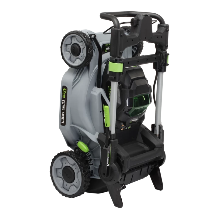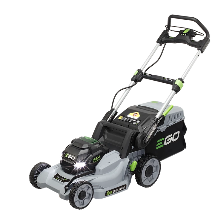 EGO LM1701E - потужна акумуляторна несамохідна газонокосарка із побутового сегменту обладнання ТМ EGO. Оснащується безщітковим двигуном і має ширину захвату газону 42 см. Час роботи від одного акумулятора EGO на 2,5 А*год досягає 20 хвилин, якого вистачає на газон площею 400 кв.м. Висота косіння регулюється синхронно для всіх коліс від 20 мм до 80 мм. Залежно від потреби, користувач може або мульчувати траву під час косіння, або збирати в комплектний 55 л мішок.