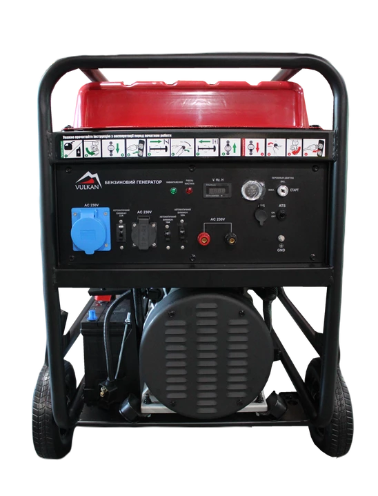 Бензиновий генератор Vulkan SC15000-III - оснащений надійним, стійким до роботи в екстремальних умовах 4-тактним двигуном марки GB750 з максимальною потужністю на виході до 14 кВт. Ідеальний варіант для забезпечення резервного живлення приладів у великому будинку. Під час роботи повного бака палива об'ємом 45 л вистачить до 6 при 100% навантаженні. Захист при низькому рівні мастила. Зручна захищена панель. Термічний автоматичний вимикач захищає генератор від перевантаження чи перегріву. Індикатор сигналів тривоги значно спрощує контроль використання.