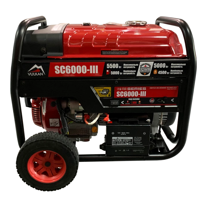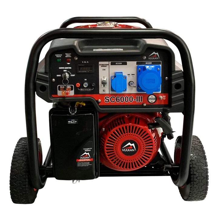 Газобензиновий генератор Vulkan SC6000-III - пристрій для забезпечення електричним струмом обладнання та електроприладів, в умовах, коли немає можливості скористатися іншими джерелами електроенергії. Електростанція Vulkan SC6000-III здатна працювати від двох видів палива: бензину і зрідженого газу LPG (пропан-бутану).
