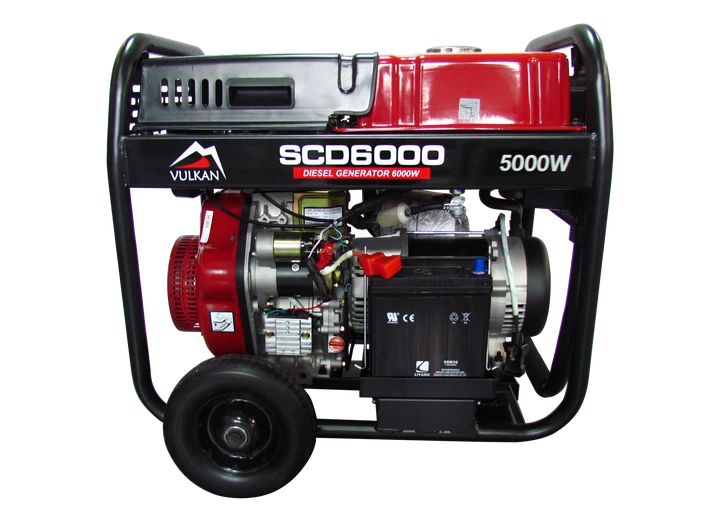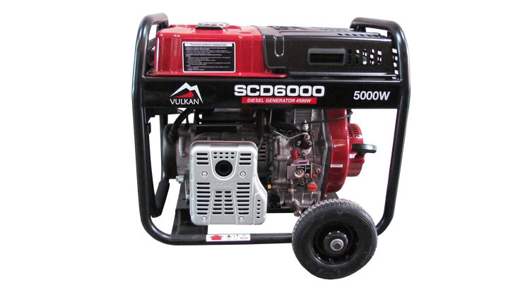 Дизельний генератор Vulkan SCD6000- пристрій для резервного живлення електрообладнання з номінальною потужністю 5 кВт. Завдяки місткому паливному баку на 18 л, робочий цикл генератора на максимальних навантаженнях може досягати 8 годин.