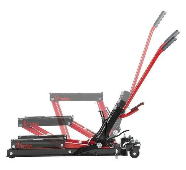 Гідравлічний підйомник для мотоциклів та квадроциклів + ремені безпеки REDATS LS-570 з вантажопідйомністю 680 кг і діапазоном підйому 120-385 мм відмінно підходить для обслуговування мотоциклів, квадроциклів, скутерів і подібних транспортних засобів як у власному гаражі, так і в автосервісах. Оснащений надійним гідравлічним механізмом, який забезпечує плавність і контрольованість підйому та опускання. Керування підйомом і опусканням виконується за допомогою педалі.