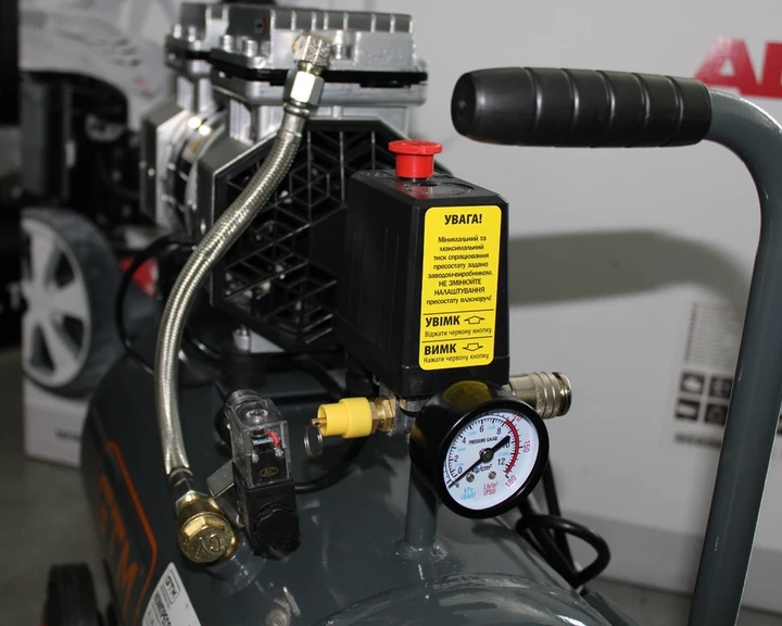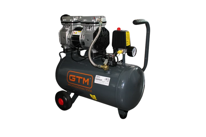GTM KAW750-24L - надійний і продуктивний безмасляний компресор побутового класу для нагнітання чистого повітря без домішок мастила і конденсату. Завдяки конструкції підходить для завдань, в яких потрібна висока якість повітря на виході: аерографії, медицині, продування відповідальних елементів машин.