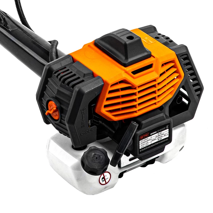 GTM CN520FAV - бензинова мотокоса (кущоріз) професійного класу, призначена для косіння трави, заростей і кущів діаметром до 25 мм на дачі, садовій ділянці або сільській місцевості. Коса оснащена 2-тактним бензиновим двигуном потужністю 1.5 кВт (2 к. с.) з підвищеним крутним моментом. Як паливо використовується суміш бензину з мастилом у пропорції 40:1 (25 мл мастила на 1 л бензину).