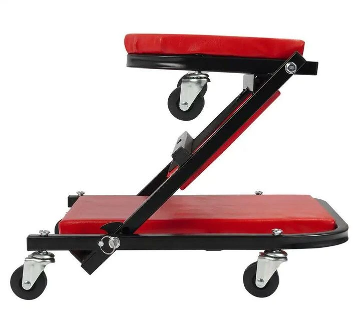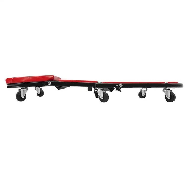 Оббивка виготовлена з екошкіри з поролоновою підкладкою, що забезпечує підвищений комфорт, стійкість до забруднень і простий догляд. Чотири поворотних колеса на підшипниках дозволяють легко пересуватися у будь-якому напрямку, не встаючи з лежанки чи стільця. Завдяки зварній сталевій рамі з високою жорсткістю ця лежанка трансформер для СТО відмінно витримує навантаження і стійка до деформацій.