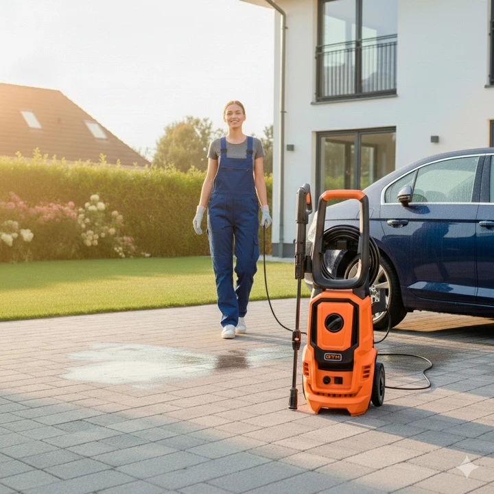 GTM LT407-2000A - потужна електрична мийка побутового класу з максимальним робочим тиском 150 бар. Призначена для миття середньозабруднених автомобілів, велосипедів, будівельної техніки, доріжок, фасадів будівель, парканів і різних інструментів.
