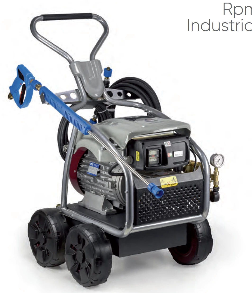 Idrobase Transformer PLUS - професійний апарат для чищення поверхонь від забруднення за допомогою води під високим тиском. Призначена для використання у промислових та побутових умовах. Ця модель працює від мережі 380 В і споживає 7,5 кВт потужності. На виході видає 900 літрів води за годину під тиском до 250 бар. Корпус виготовлений з термоформованого полістиролу та встановлений на раму з нержавіючої сталі.