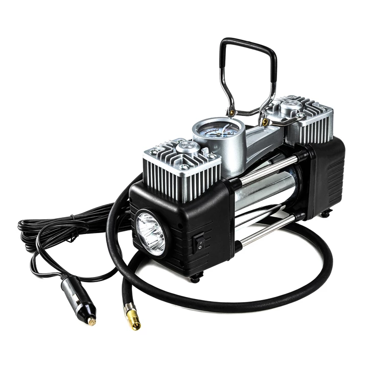 GTM TC-506A - компактний і легкий компресор, що призначений для накачування коліс легкових автомобілів, позашляховиків і навіть мікроавтобусів. Це мобільний високопродуктивний компресор без ресивера. Він працює від мережі постійного струму з напругою 12 В. Компресор можна підключати до прикурювача або через спеціальний перехідник безпосередньо до клем акумулятора. При роботі компресор видає 60 л/хв з робочим тиском до 10 бар. Компресор поставляється в сумці з набором аксесуарів для повноцінної роботи.