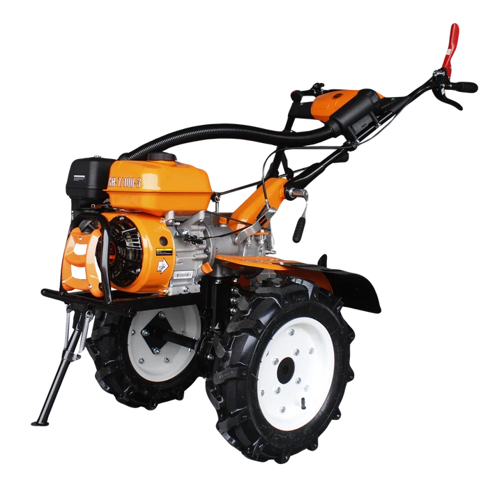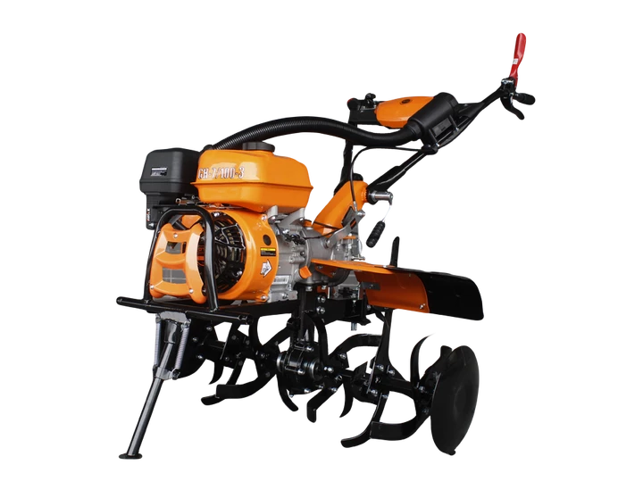 GTM GH-7/100-3 - садова техніка побутового класу для обробки землі, оранки грядок та городів середньої площі. Дана модель мотоблока оснащена бензиновим двигуном з потужністю 7 л.с (5,2 кВт) зі збільшеним крутним моментом для кращої роботи. Ширину культивації під час роботи можна регулювати від 600 мм до 1000 мм, залежно від ширини грядки.