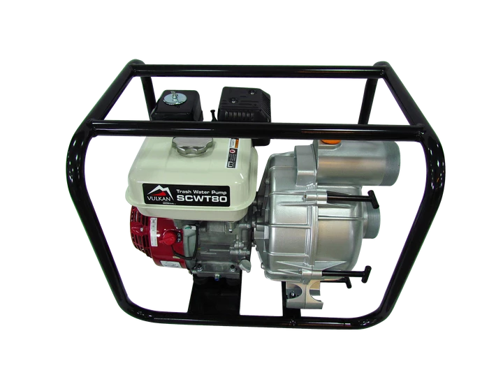 Модель Vulkan SCWT80H володіє потужним двигуном з потужністю 6,3 л.с. Максимальний натиск Vulkan Scwt80h - 26 м-кодів, а глибина всмоктування – 8 м. Мотопомпа здатна перекачувати рідини з домішками піску, мула, глини, дрібних каменів і іншого сміття.