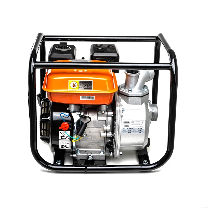 Мотопомпа LGP20-C з 4-тактним бензиновим двигуном потужністю 6,5 к.с. і продуктивністю до 30 м?/год призначена для надійного перекачування великих об’ємів води у різних сферах - від сільського господарства до будівництва й комунального обслуговування. Вона ефективно працює при максимальній висоті підйому до 30м, підходить для зрошення, відкачування дренажної води, пожежогасіння та очищення колодязів. Для роботи з водою, що містить пісок або мул, необхідно обов’язково використовувати фільтр на всмоктувальній трубі, щоб уникнути пошкодження насосної частини.