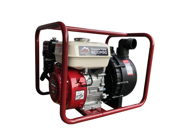 Vulkan SCCP50H — бензинова мотопомпа, призначена для перекачування хімічних рідин у малих та середніх об'ємах. Підходить для роботи з рідинами, що містять домішки агресивних хімічних сполук. Оснащена надійним японським двигуном Honda GX 160, що гарантує стабільну та довговічну роботу.