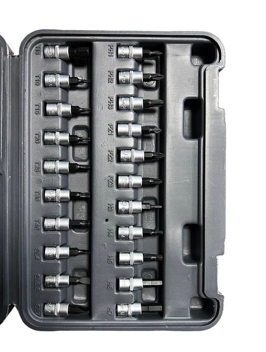 Набір поставляється у жорсткому пластиковому кейсі з покращеною фіксацією інструментів та металевими застібками, що гарантує надійне зберігання і зручність транспортування.
