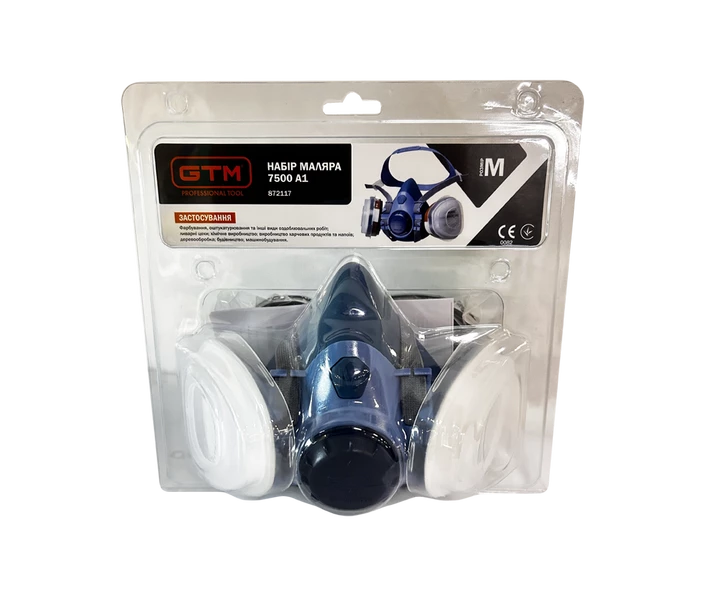 Набір маляра GTM - набір із напівмаски-респіратора розміру M і комплектів фільтрів 701-А1, передфільтрів 7N11 і тримачів 510. Призначений для захисту органів дихання від впливу широкого спектра отруйних газів, аерозолів або пилу, що є небезпечними при безпосередньому потраплянні в легені людини.