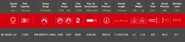 В набір входить пневмогайкокрут NC-4255Q та