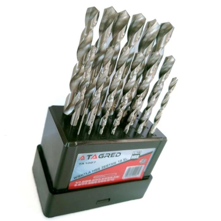 Набір свердл по металу TAGRED TA1027, 19 шт - виготовлені з найкращої швидкоріжучої сталі HSS з циліндричним хвостом та посиленою ріжучою кромкою. У комплекті підставка.