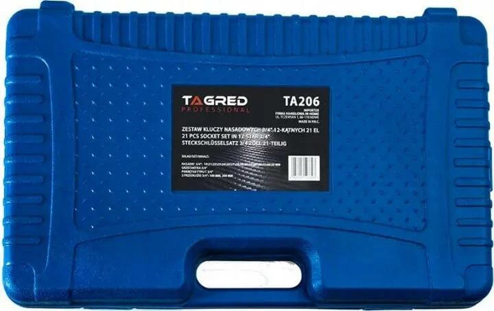 Набір торцевих ключів TAGRED TA206 - містить 21 елемент 12-кутових торцевих головок, виготовлених з високоякісної кованої сталі CRV (хром-ванадієва сталь). Незамінний в кожній автомайстерні, цей набір ідеально підходить для ремонту вантажівок та сільськогосподарської техніки. Торцеві головки чудово підходять для відкручування та закручування великих гвинтів. Виготовлені з хром-ванадієвої сталі з високим вмістом вуглецю, вони забезпечують високу твердість та довговічність.