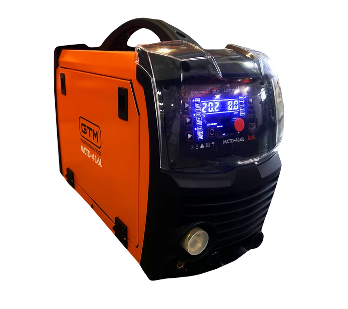 GTM MCTD-416L - багатофункціональна установка для зварювання чорних металів у середовищі захисних газів. Відмінною особливістю цієї моделі є універсальність: крім основного режиму MIG, є режим ручного ММА і аргонодугового зварювання LIFT TIG, а також режим плазмового різання CUT. Напівавтомат обладнаний великим LCD-дисплеєм, на якому відображаються поточні налаштування і параметри.