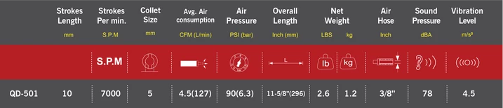 Ножівка маятникова пневматична QD-501 - призначена для швидкого та точного різання металу, пластику, композитів та інших матеріалів. Компактна конструкція і легкий корпус забезпечують зручність у використанні, а висока частота ходу (до 7000 ходів/хв) дозволяє виконувати роботи з максимальною продуктивністю.
