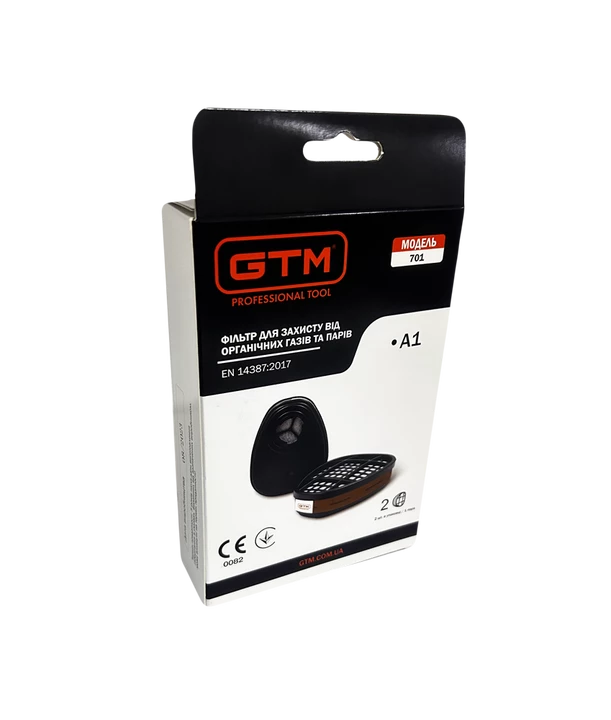 GTM 701-A1 - змінний повітряний фільтр для захисних повнолицьових масок і напівмасок GTM. Призначена для захисту органів дихання від впливу органічних газів і парів органічних речовин з температурою кипіння >65 град. C.