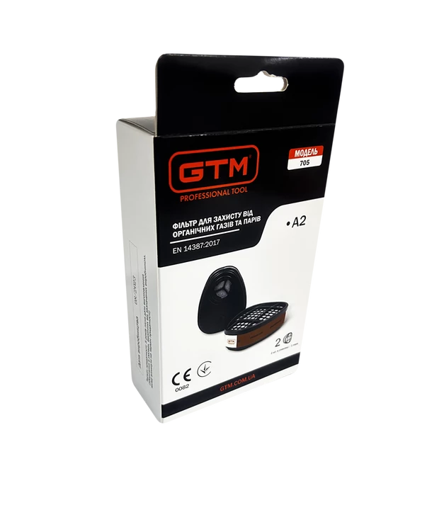 GTM 705-A2 - змінний повітряний фільтр для захисних повнолицьових масок і напівмасок GTM. Призначена для захисту органів дихання від впливу органічних газів і парів органічних речовин з температурою кипіння >65°C.