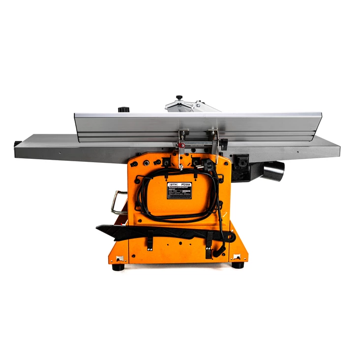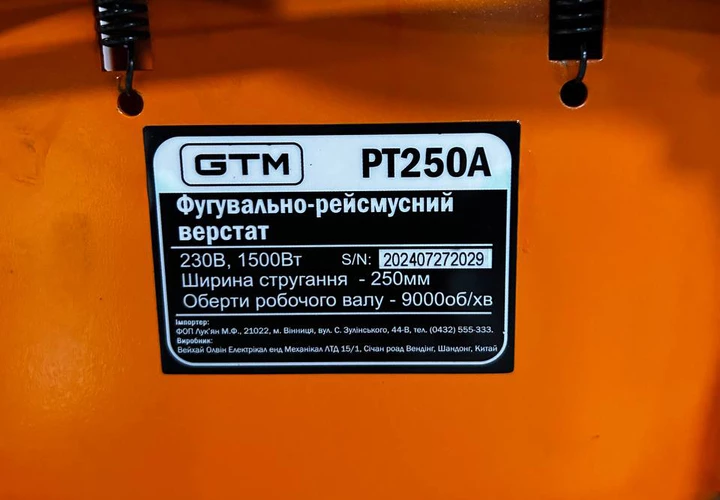 GTM PT250A - компактний деревообробний верстат побутового класу. Поєднує в собі відразу два пристрої: фугувальний верстат і рейсмус. Дає змогу отримати на виході гладкі дерев'яні заготовки або дошки шириною до 252 мм і висотою до 120 мм. Працює від побутової електричної мережі 220 В і споживає всього 1500 Вт.