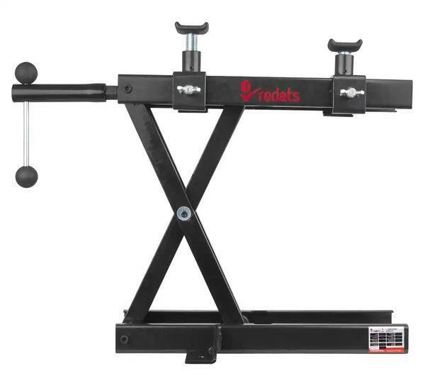 Пристрій дозволяє піднімати мотоцикл 2 способами: знизу з використанням гумової накладки і за раму за допомогою спеціальних кронштейнів. Підйом виконується за допомогою ножичного механізму і керується обертанням гвинта. Конструкція виготовлена з міцної сталі з антикорозійним покриттям і має високу стійкість до скручування і пошкоджень. Може встановлюватися на будь-якій твердій, рівній поверхні. Невеликий розмір і вага 14 кг забезпечують легке транспортування, а компактність у складеному вигляді дозволяє зручно зберігати цей домкрат для мотоциклів.
