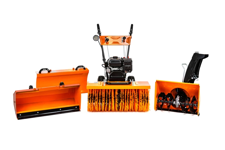 > Універсальність - для підмітальної машини доступні низка аксесуарів, як відвал для прибирання снігу і збірник для сміття.
