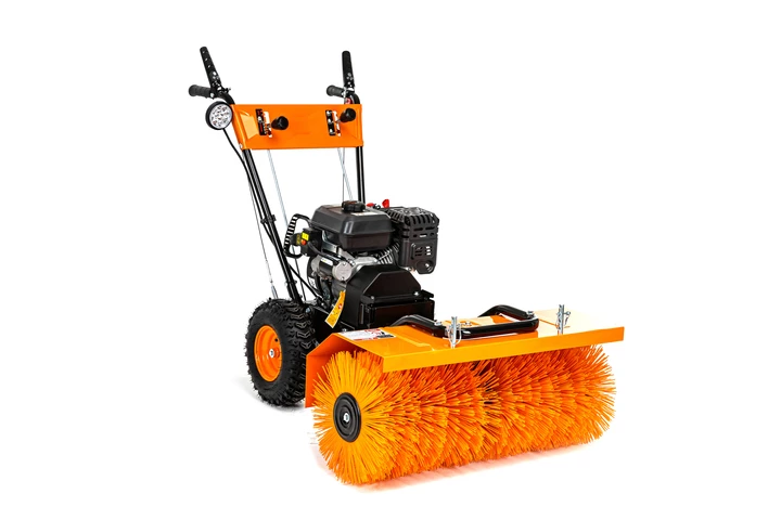 GTM SW800E — це професійне бензинове самохідне прибиральне обладнання, розроблене для ефективного підмітання великих площ. Модель оснащена міцною обертовою щіткою з жорсткого нейлону, що забезпечує легке очищення від листя, сміття, снігу та інших забруднень.