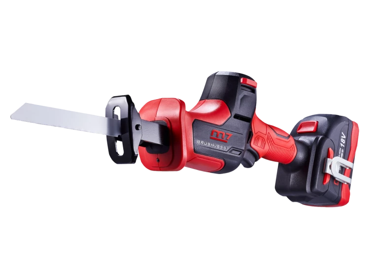Mighty Seven DRS-102A - професійний інструмент для розпилу широкого спектра матеріалів: від дерева і листів фанери до кольорових металів або сталі. Шабельна пила живиться від стандартних акумуляторів M7 18V. Вбудований безщітковий двигун дає змогу працювати довше від акумулятора. Швидкість ходу пилочки регулюється простим натисканням на курок під час роботи. Додатково в інструмент вбудована система швидкої заміни пильних полотен без ключа.