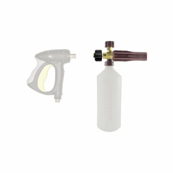 Пінна насадка Idrobase з різьбовим з’єднанням М22?1,5 — це надійний аксесуар для мийок високого тиску, що дозволяє ефективно наносити піну на поверхні. Завдяки латунному корпусу та регульованій подачі миючого засобу забезпечується тривалий термін експлуатації й зручність використання.