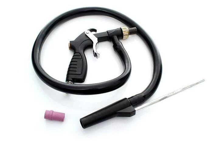 У комплект входять дві змінні насадки: металева і керамічна, шланг для всмоктування піску і вентиляційна труба, що вставляється в резервуар для піску.