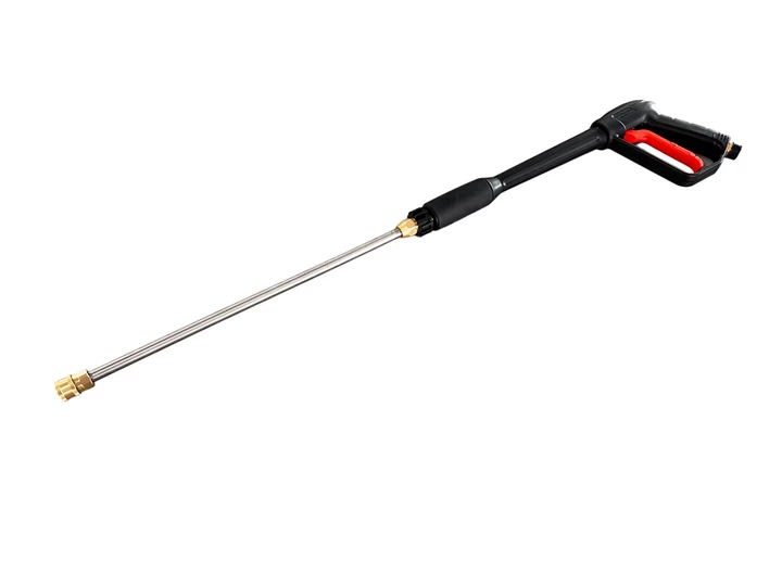 GTM G17BL - пістолет для мийки високого тиску GTM LT890. Поставляється разом з пікою зі швидкознімним з'єднанням для підключення сопел. До шланга високого тиску приєднується за допомогою різьбового з'єднання. На курку є перемикач, що блокує випадкове натискання.