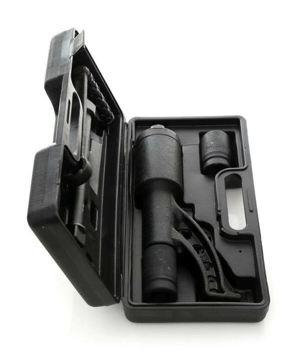 В комплект поставки входять головки 32 мм і 33 мм, а також подовжувач 270 мм, що дозволяє відразу використовувати інструмент без необхідності докуповувати аксесуари. Ключ не потребує підключення до компресора чи електрики, що дає змогу ефективно працювати у польових умовах. Цей ручний планетарний ключ для вантажівок поставляється в міцному кейсі, що забезпечує зручність транспортування та зберігання.